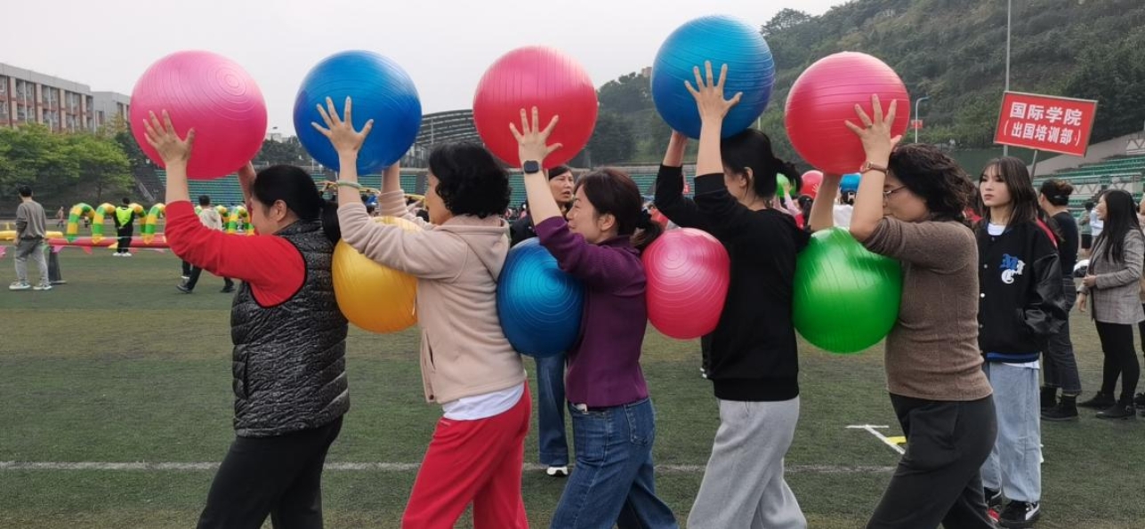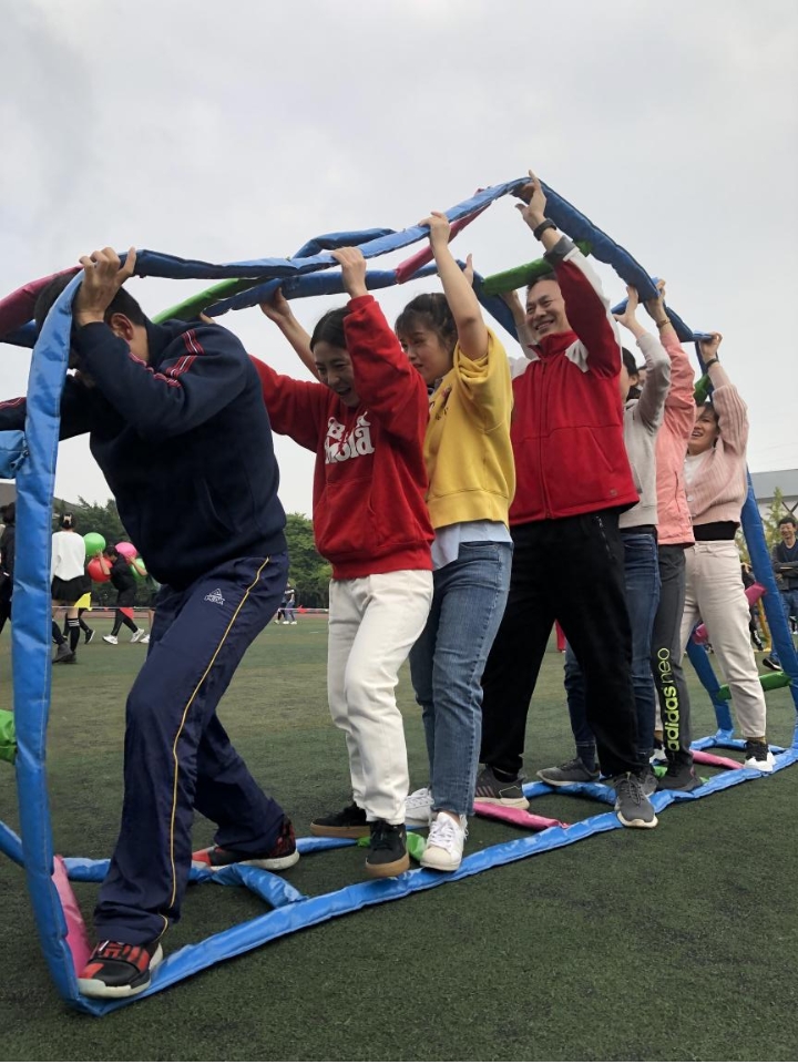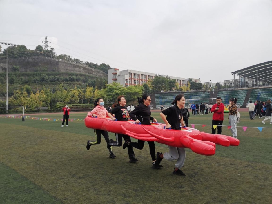 最精彩的赛场无疑属于彩虹纵队、财源滚滚、超级障碍赛和皮皮虾四个集体项目。英语学院参赛队伍或匍匐穿梭,或托举道具迈着整齐的步伐前进。在响亮而富有节奏感的口号中,教职工们精神抖擞,配合默契。同事间的加油助威声此起彼伏。现场欢笑不断,将活动气氛推向高潮。最终,在全院教职工的团结一心、协作拼搏下,英语学院以高分荣获本次活动集体二等奖。