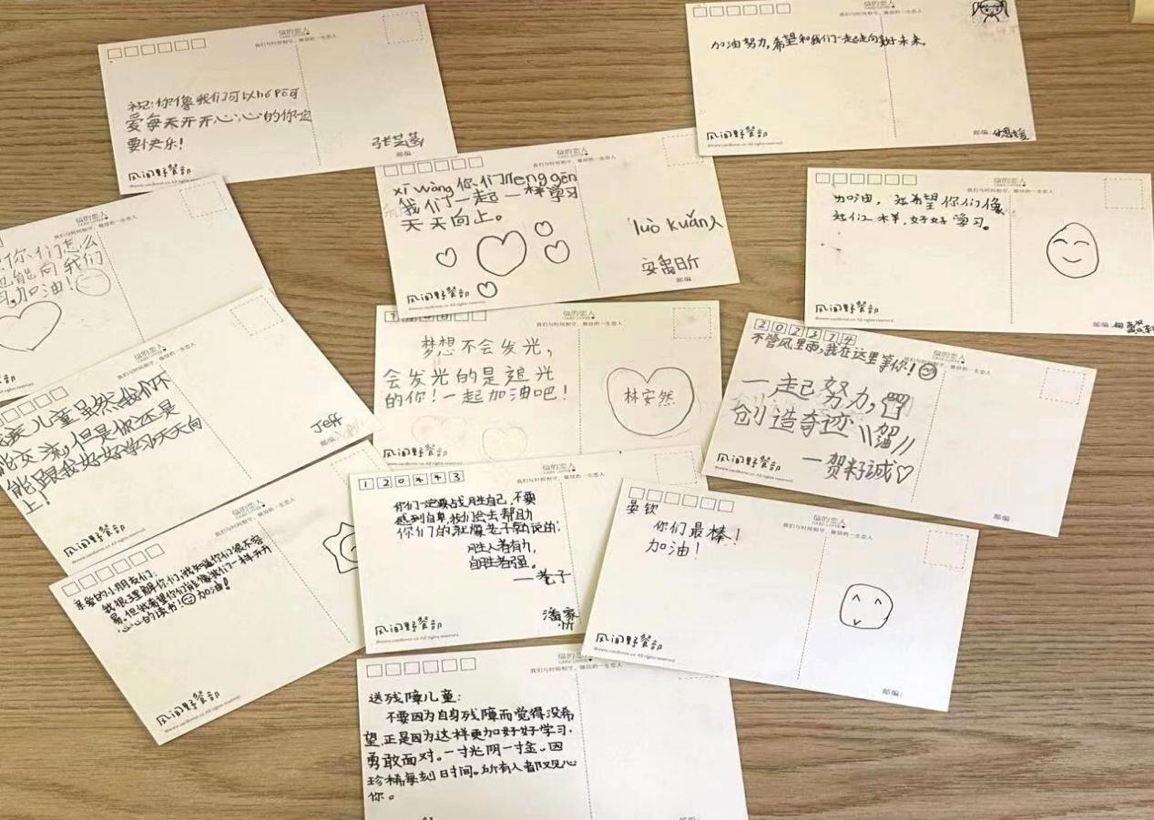 小朋友们展示自己制作的“庆祝建党百年”主题贺卡