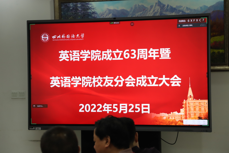 2022年5月25日下午16:00,四川外国语大学英语学院成立63周年暨英语学院校友分会成立大会在西区立德楼B307会议室举行。会议采取线上线下相结合的方式进行。