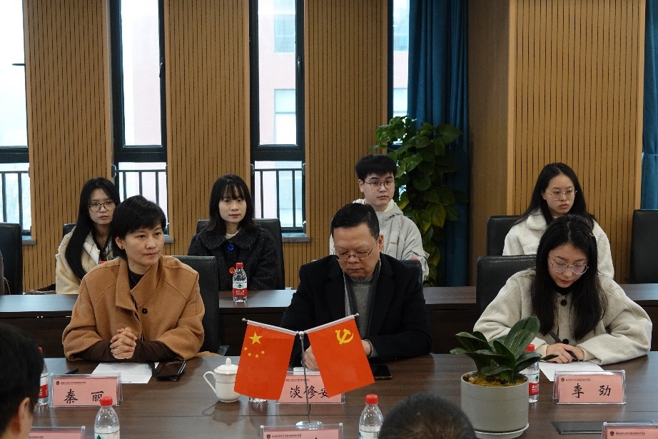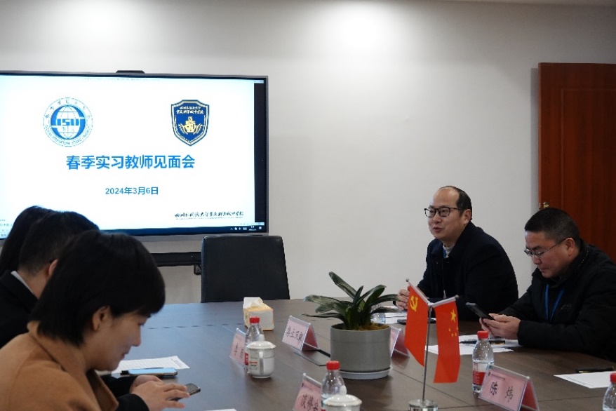 3月6日上午,四川外国语大学重庆科学城中学校在厚德楼会议室举行了四川外国语大学英语实习教师见面会。四川外国语大学英语学院党总支书记淡修安、党总支副书记秦丽、辅导员李劲,以及四川外国语大学重庆科学城中学校陈炜书记、沈嘉校长、廖雪寒副校长、陈文宇主任、韩辉主任出席本次见面会,校内指导教师和实习教师参加了此次会议。会议由教学教务部韩辉主任主持。