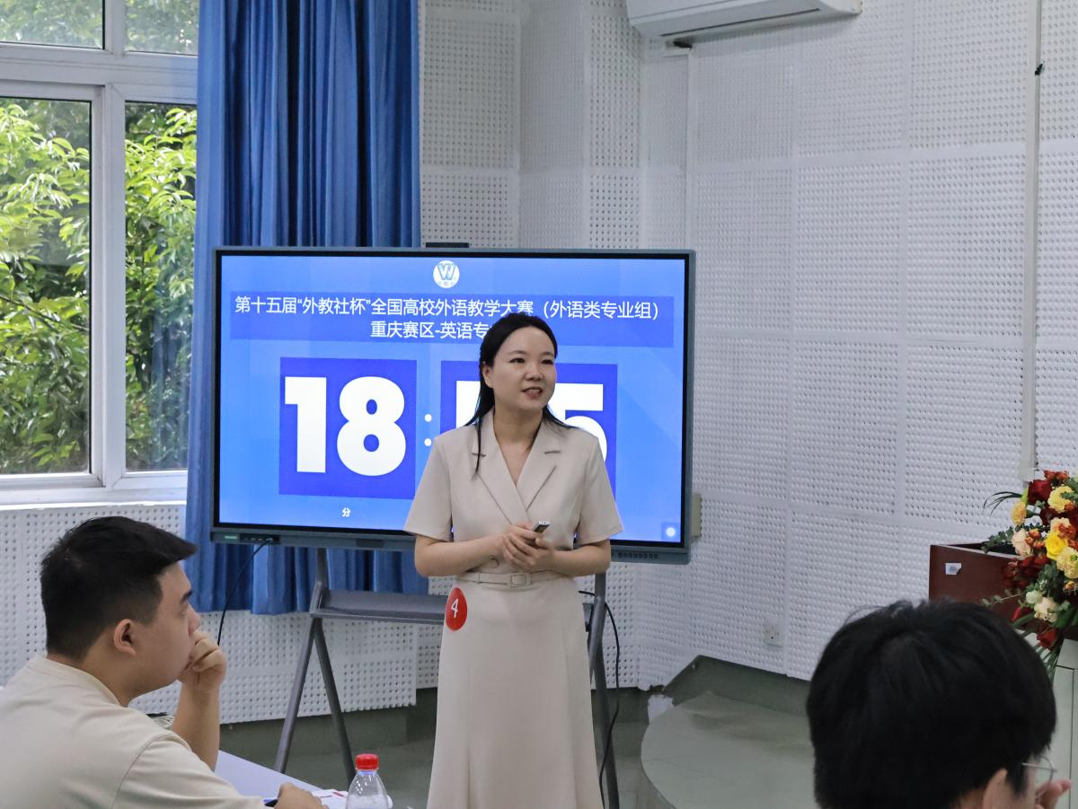 上午9点,我校顺利举办第十五届“外教社杯”全国高校外语教学大赛(外语专业组)重庆赛区复赛。本次大赛包含“英语专业组”和“商务英语专业”组两个组别,分别在我校东区宏文楼2-2教室、歌乐书院同时进行。本次大赛复赛采用现场授课的形式,参赛教师需在20分钟内完成教学任务。前3-5分钟,选手陈述对授课文本的整体教学设计,后15分钟为课堂授课时间。来自各大学的教师们展现出了精彩的教学创意和新颖的教学方法,融合了最新的内容呈现、师生沟通和课堂管理技术,为在场评委和观众展现了新时代外语专业教室的独特魅力。