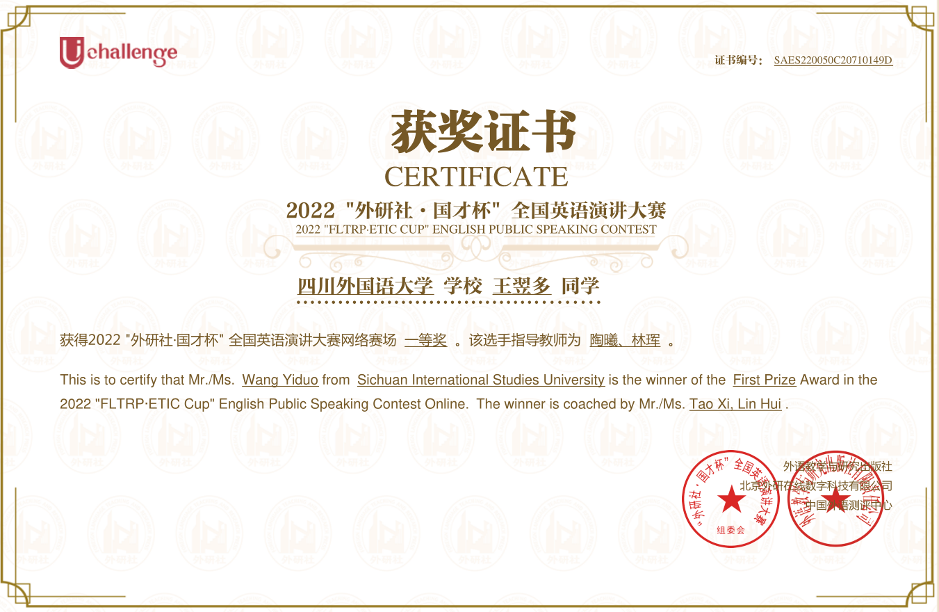 2022 "外研社·国才杯" 全国英语演讲大赛网络赛场 |